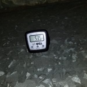 The temperature coming out of the air conditioner into the ductwork is 53.5 degrees here.