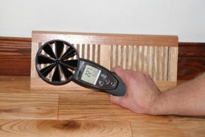 Some of the problems found during testing indicate a poor balance of airflow being delivered to each room. Air flow is typically measured in cubic feet per minute or CFM. If rooms on one side of the house are all getting measurements of 60 to 80 CFM of air while rooms on the opposite side of the house are only getting 30 to 40 CFM of air, then we know the system isn’t balanced properly. We take readings of each supply register and each return grille in order to map them to the layout of the house to help diagnose airflow issues related to balancing.